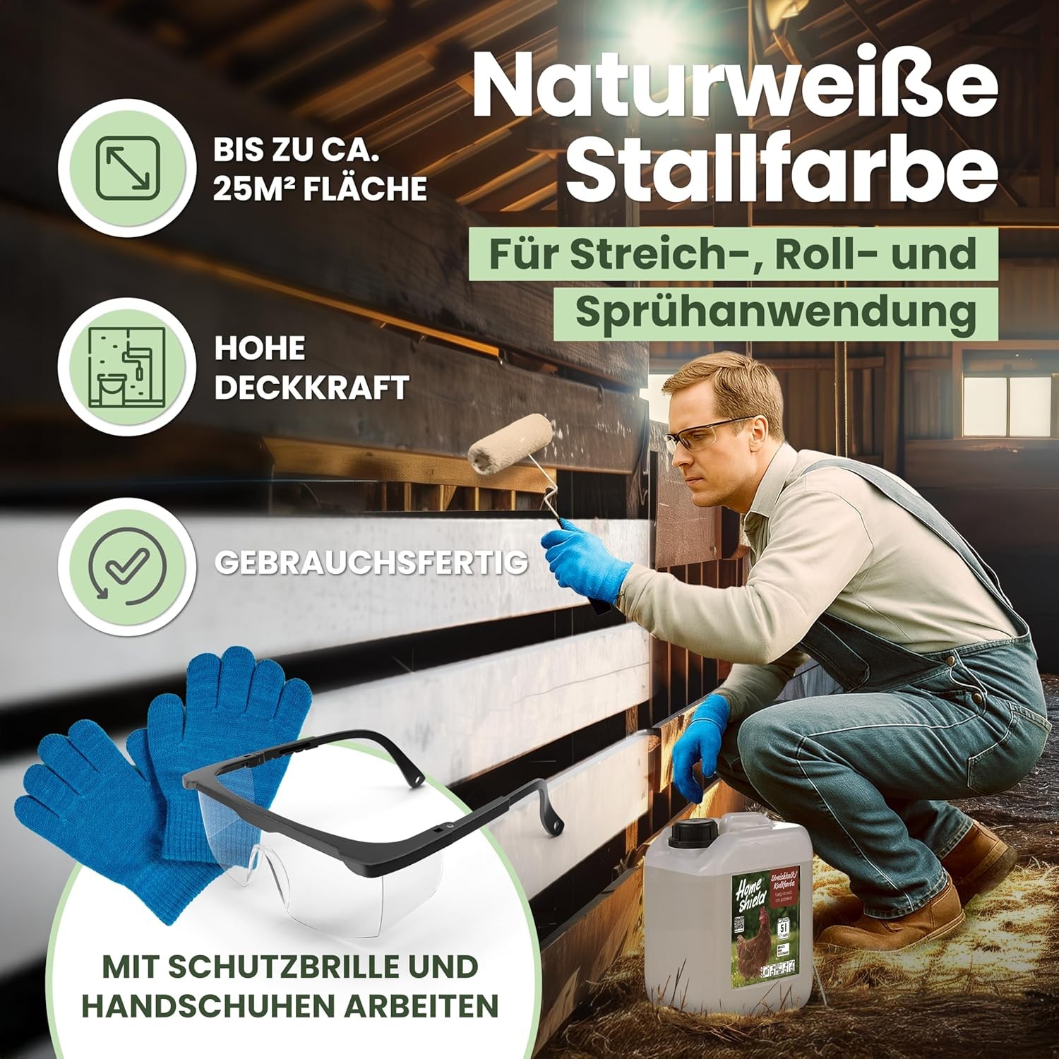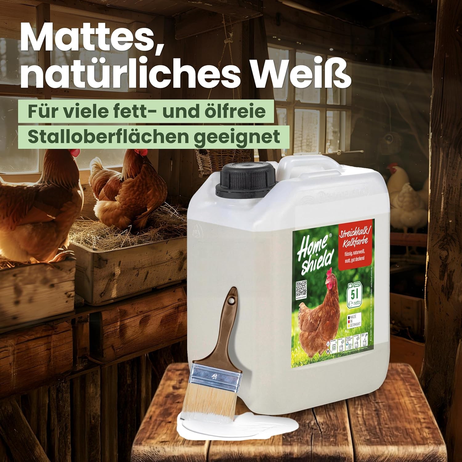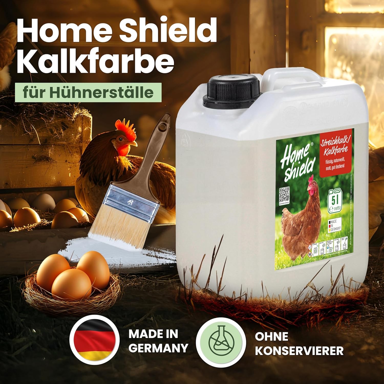 - Naturweiße Stallfarbe: Home Shield Kalkfarbe für den Hühnerstall in flüssiger Form ist frei von Konservierern und eignet sich besonders für den Anstrich von Tierställen wie Hühnerställen